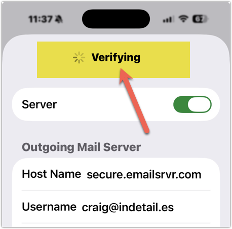 5. Click Done, and the account will go back and show a "Verifying" icon, and as long as the details you have entered are correct, you can send emails without errors.