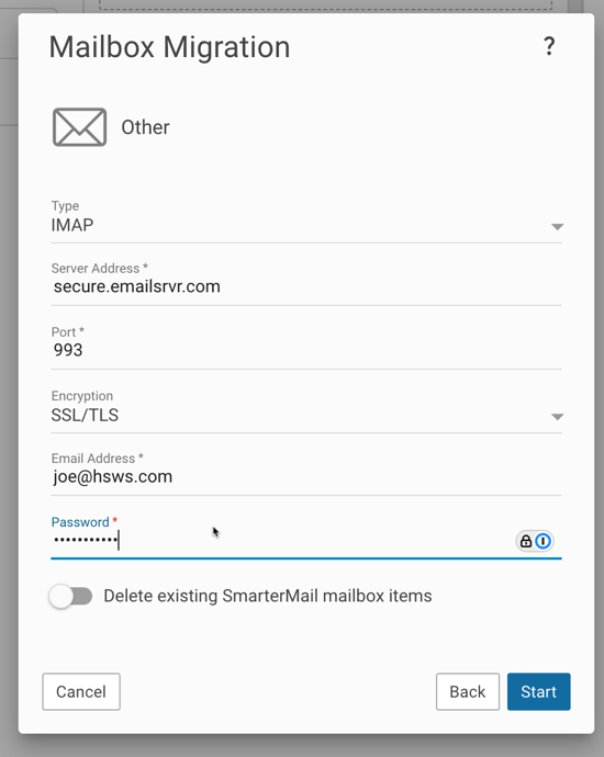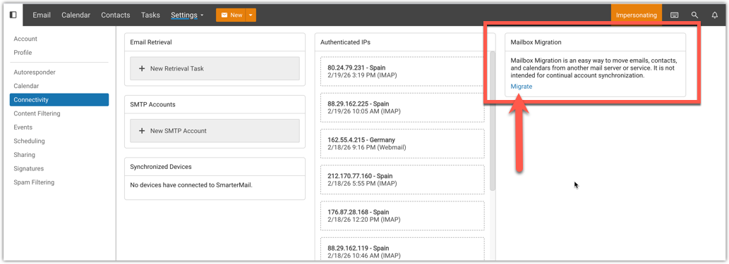 This arctile will explain how to migrate an email account from a remote server (source) into a SmarterMail account (destination).