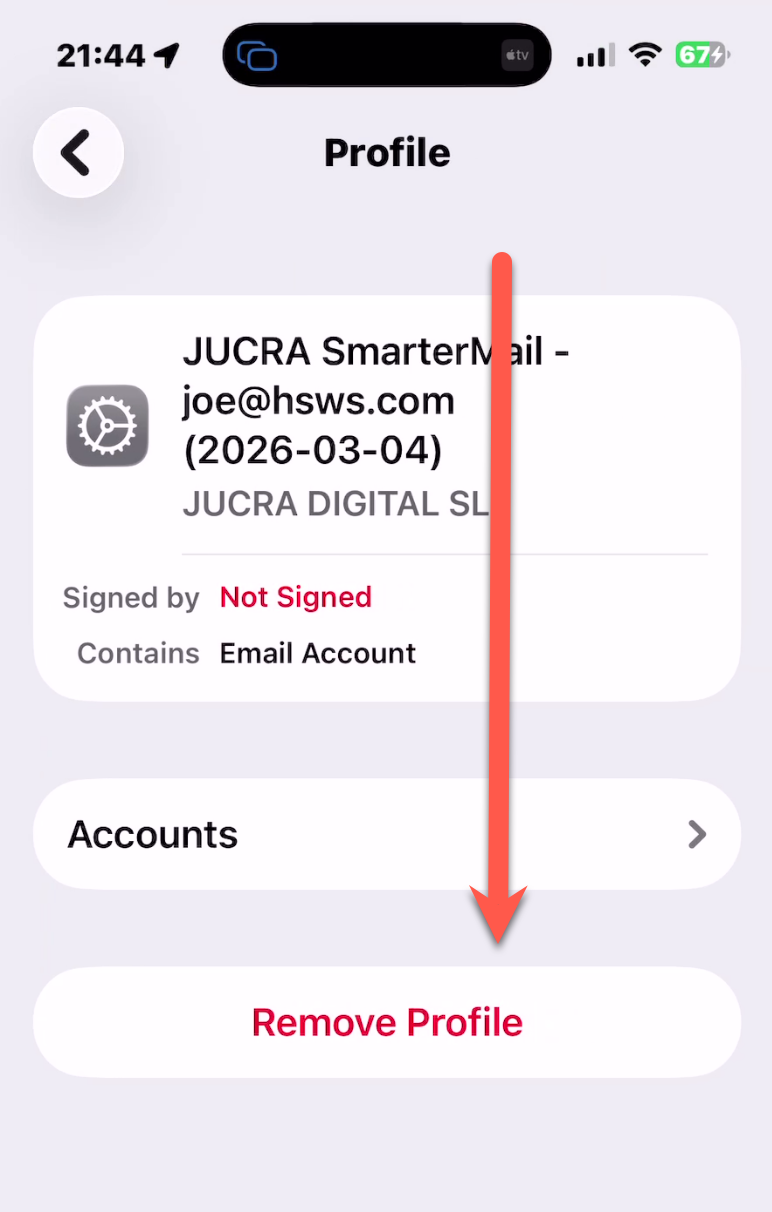 NOTE, this will be an email account installed as a profile installer and appears in the VPN & Device Mnagement page in your iphone.